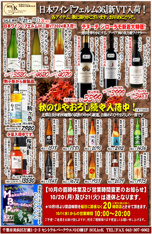 9/24(水)は、前日の9/23(祝火)祝日営業しました為、振替休業日