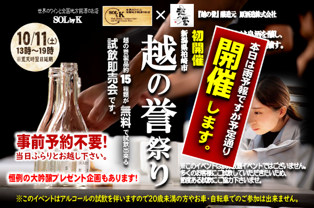 越の誉祭りは予定通り13時~19時まで開催致します!